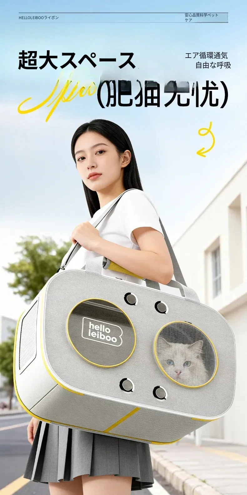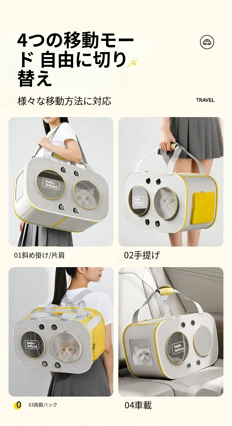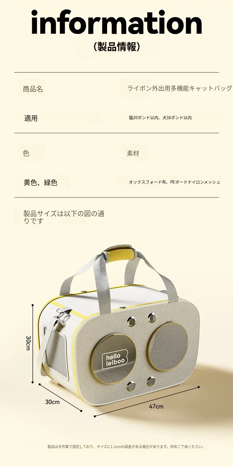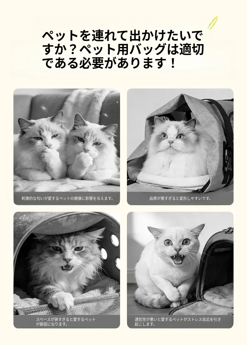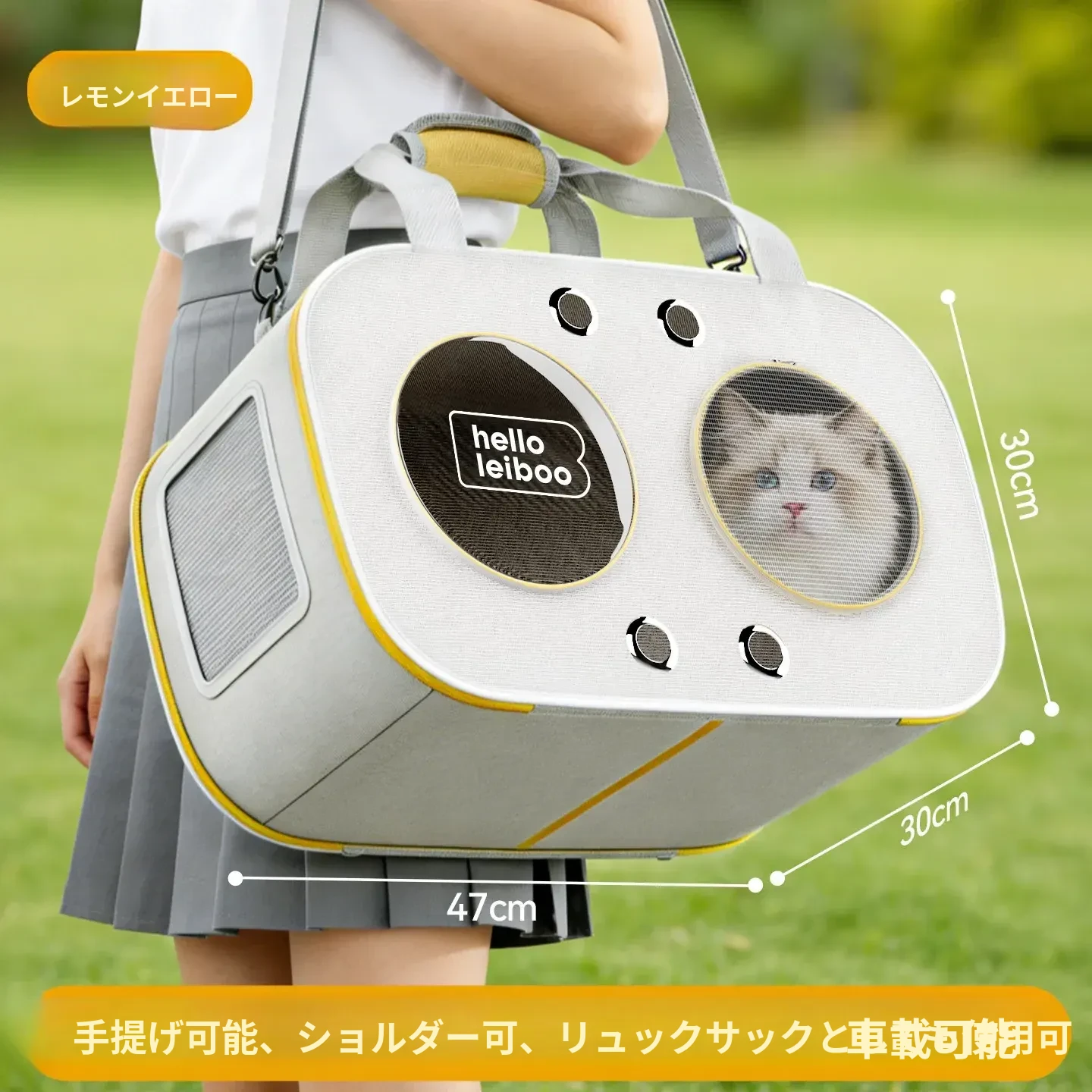 猫ちゃんのお出かけに最適!大容量&通気性抜群のペットキャリーリュック - ストレスフリーで快適な移動を実現!手提げ&斜め掛け対応、あなたの小さな友達をいつでもどこでも連れて行けます!